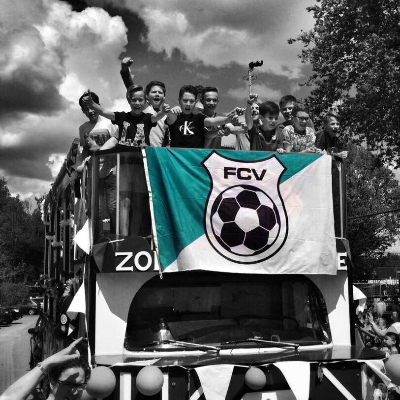 FCV-Venlo is een fijne club. Plezier is daar belangrijker dan kampioen worden, maar als je dat wordt, neemt de jeugdvoorzitter de microfoon. En hoe. Zijn woorden-tsunami moet tot in Duitsland te horen zijn geweest. Net als dat de groene rookpluimen na het laatste fluitsignaal tot bij de Oosterburen te zien moeten zijn geweest. Het was groots en we zagen onze oudste en zijn team vandaag minstens tien centimeter groeien.